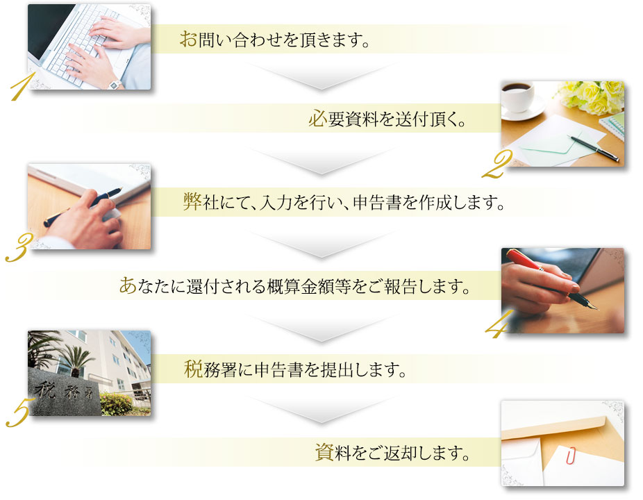 なんとなく確定申告をするという義務は分かっていたのですが、確定申告で税金が戻ってくるという認識はなかったのでただ面倒だなぁと申告を躊躇していたところ、知人から紹介頂きました。